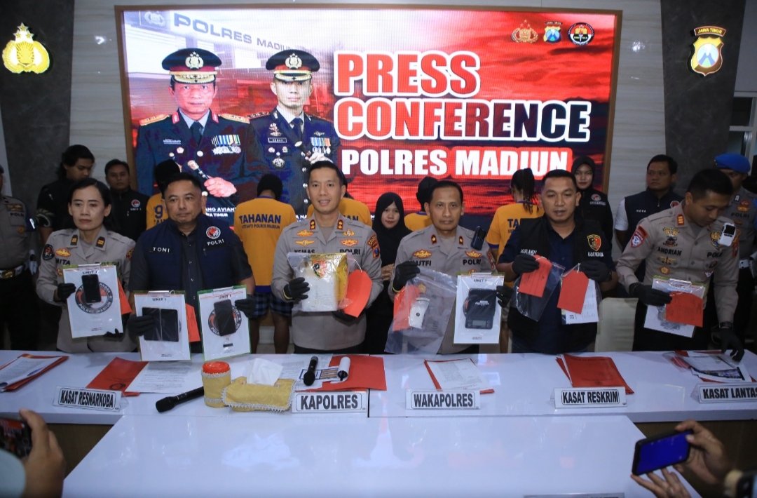Kapolres Madiun AKBP Kemas Indra Natanegara menjelaskan, penangkapan pertama dilakukan terhadap DS di tepi Jalan Raya Madiun–Ponorogo, Kecamatan Geger, Rabu (04/06/2025). Dari tangan DS, polisi menemukan 0,43 gram sabu-sabu.