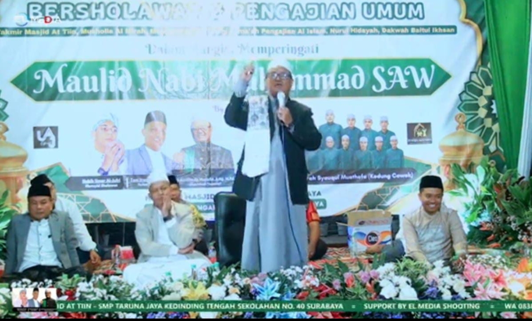 Acara religius ini menghadirkan para ulama dan tokoh agama, di antaranya Habib Umar Aljufri serta Dr. KH. Khozin Mustafid, S.Ag., M.Pd.I. dan lantunan sholawat dari grup Hadrah Syauqul Musthofa semakin menambah suasana syahdu dan penuh keberkahan.